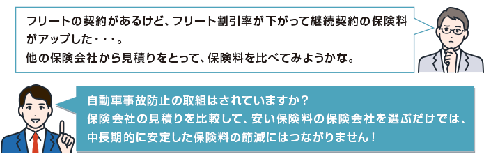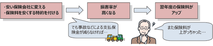 事故防止取組を行わずに単に保険料のみを安くすることは、「損害率」の上昇につながり翌年度の保険料が割高になります!!